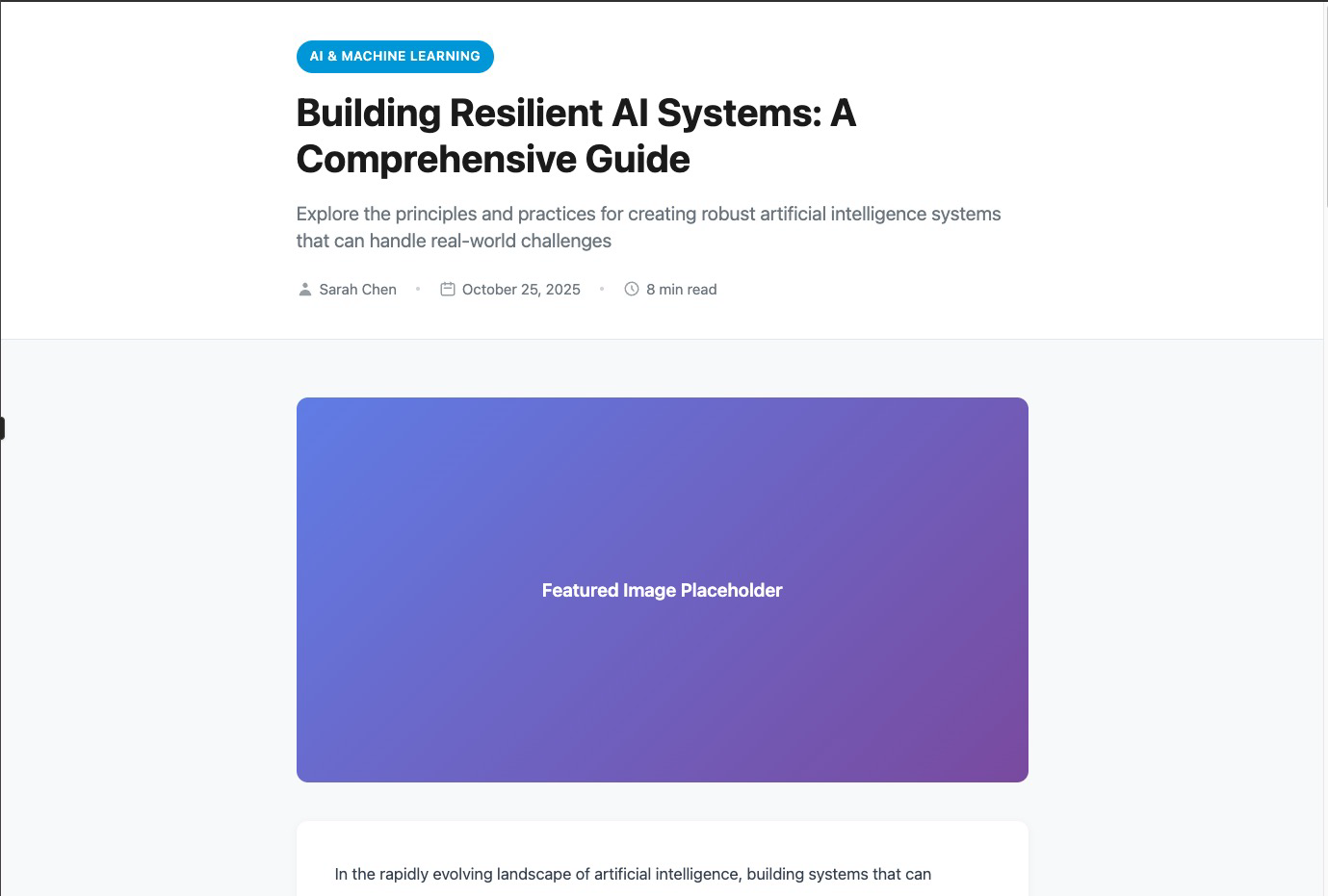 Prompt: Build a blog post layout with author bio, reading time, and related articles